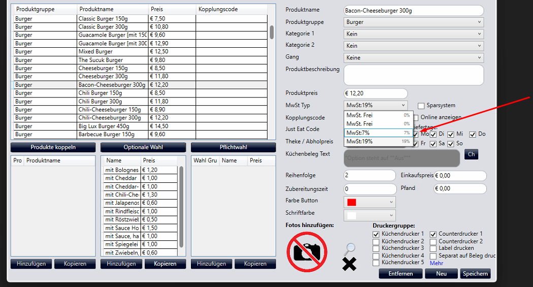 In diesem Fall können Sie die 7% hinterlegte Speisen bereits in ihrer Liefer-Speisekarte finden und auswählen.