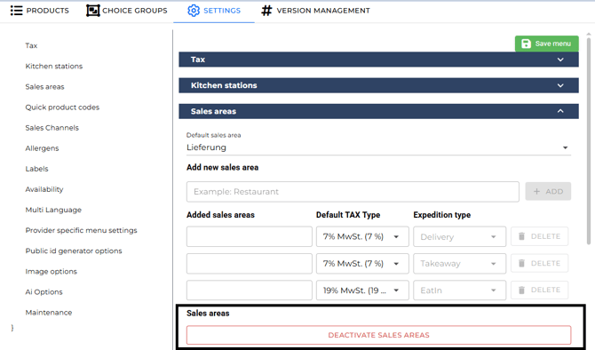 Wie passe ich mein Menü an für die MwSt. Änderungen in 2026? (3.0 Web basiert) (de)