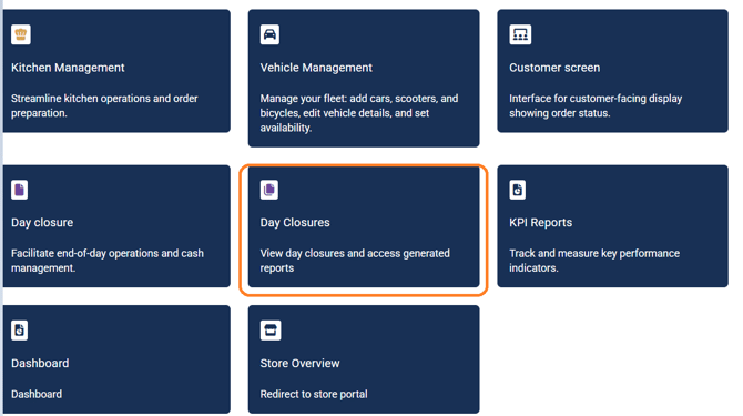 Like in the following case, you might have to scroll down a bit to see all the other available (including dayclosures) menus.