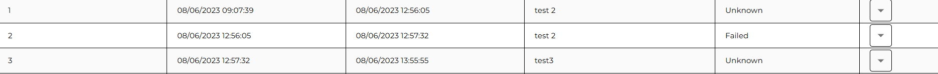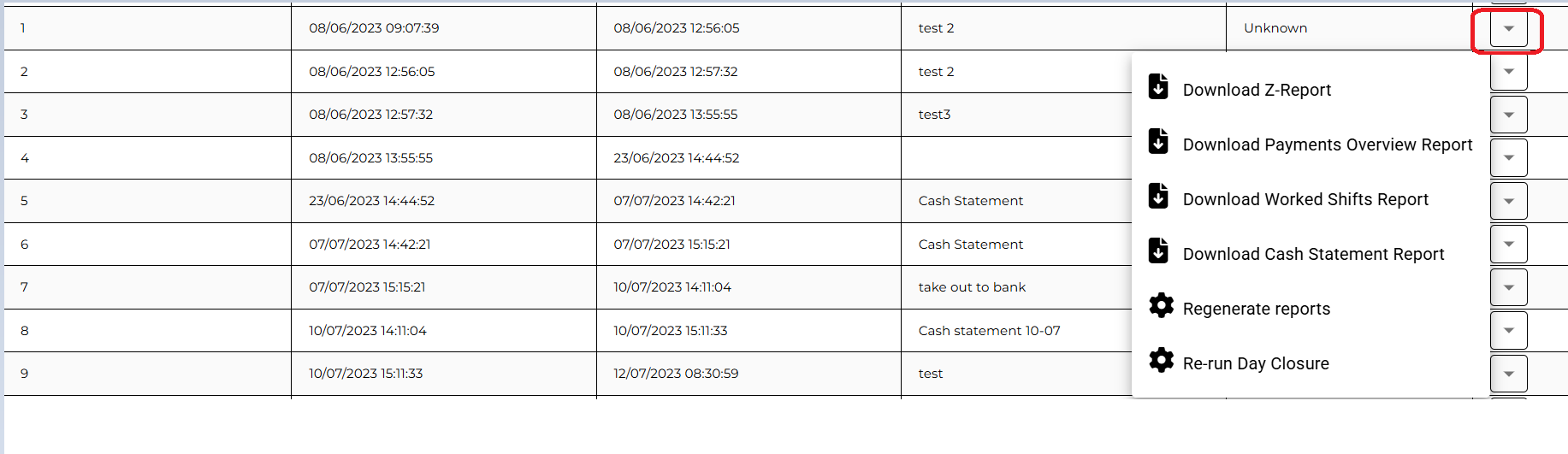 You can see , from left to right, the number, the dates, additional notes and the status of the day closure, if it was successful or failed.