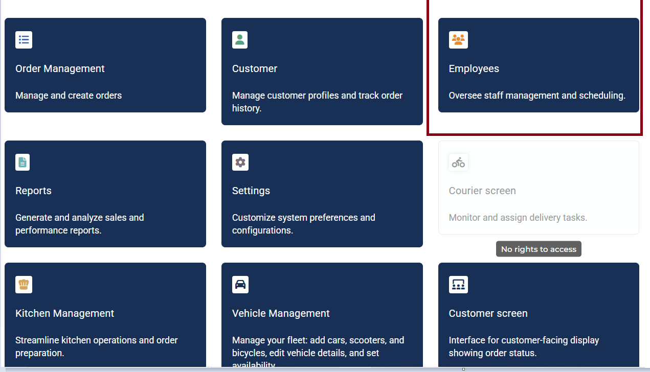 - First of all you have to enter the "Employees" menu from your POS main screen.