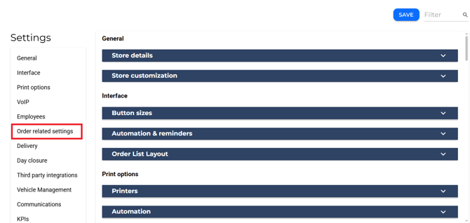 - Click on "Order related settings" on the left