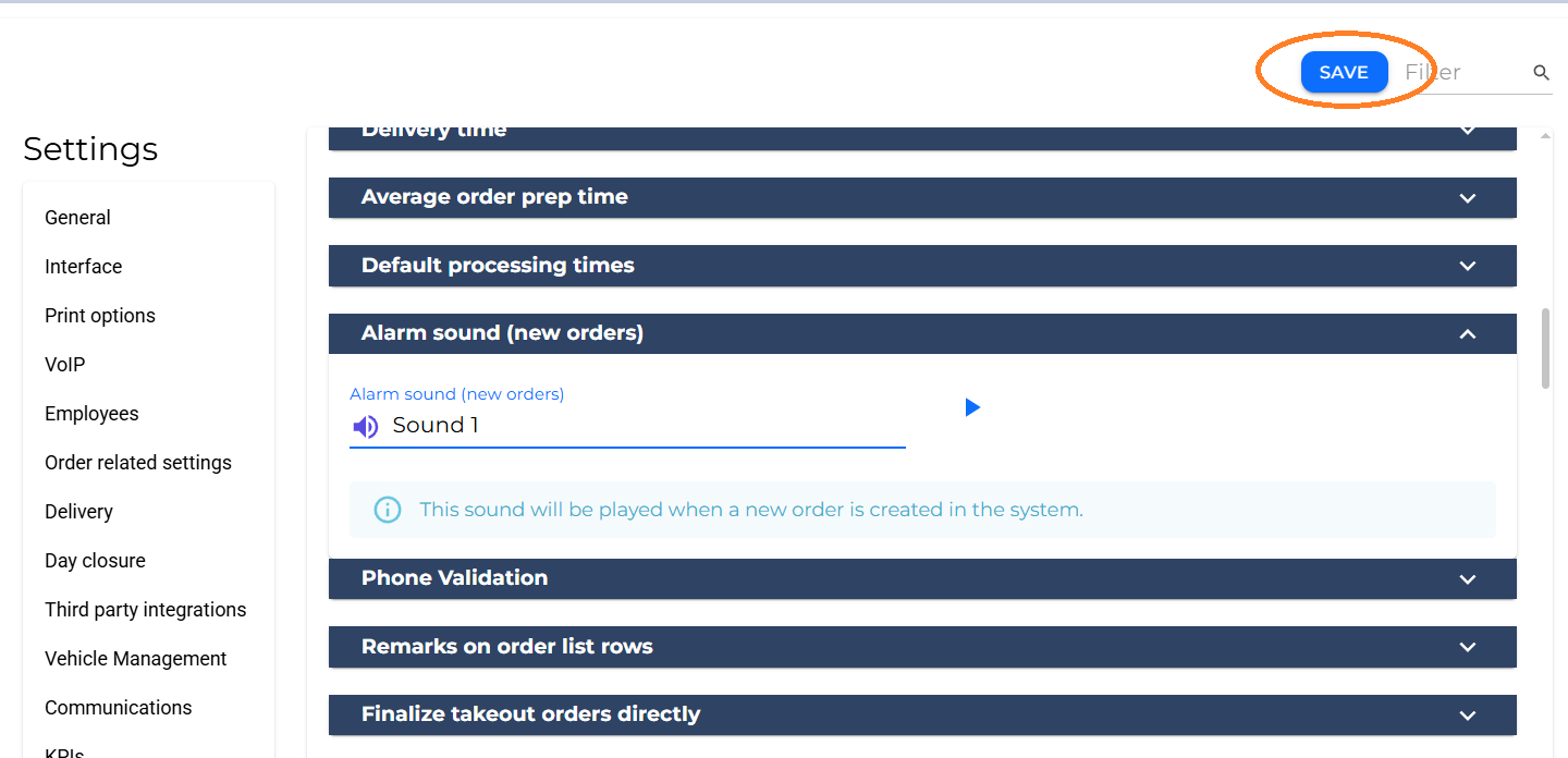 In this article you will learn how to change the sound of the automatic alarm sound (new orders).