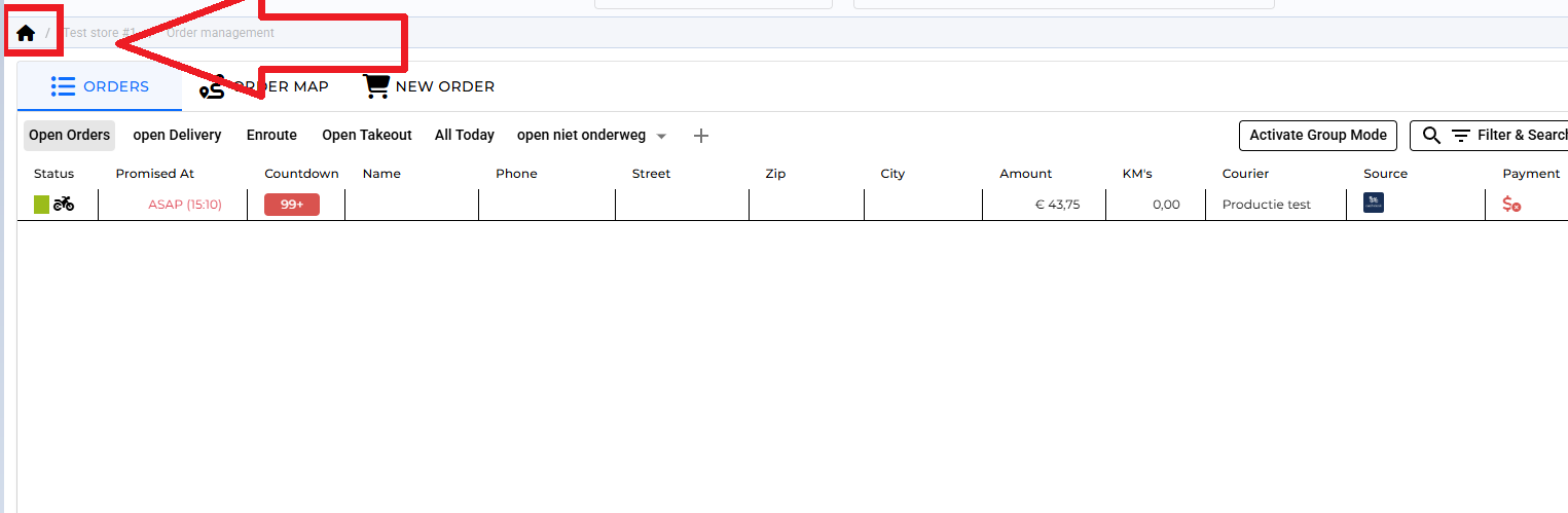1.) If you are in your order-management module working, you can press on the "Home" button to get to your POS - overview.