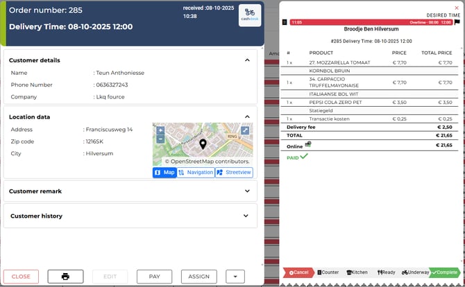 Assign (Toewijzen): Assign the order to a courier or driver.