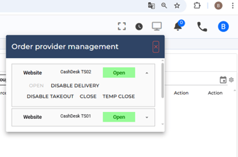 A green icon indicates that your website is open, while a red icon means that your website is closed.